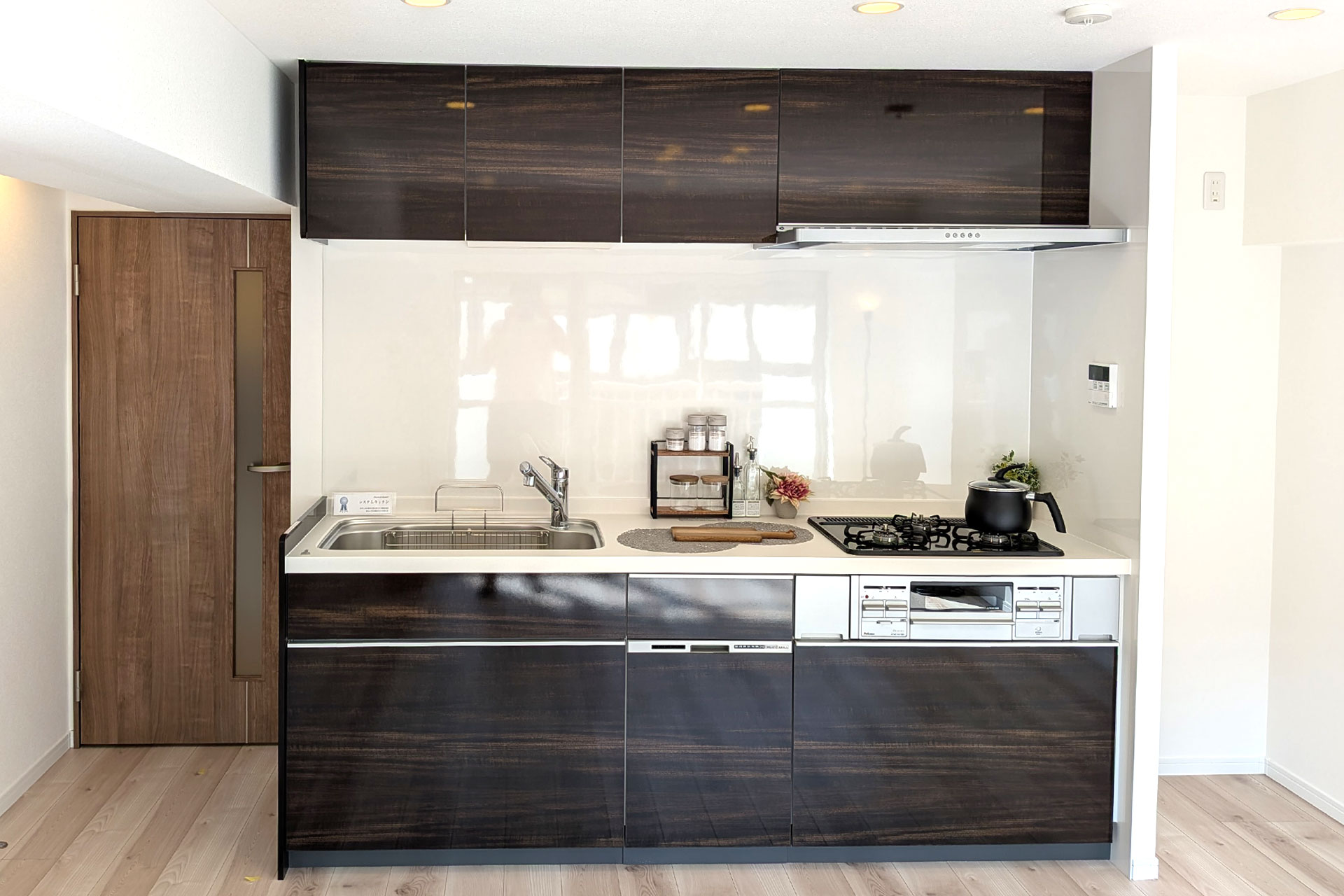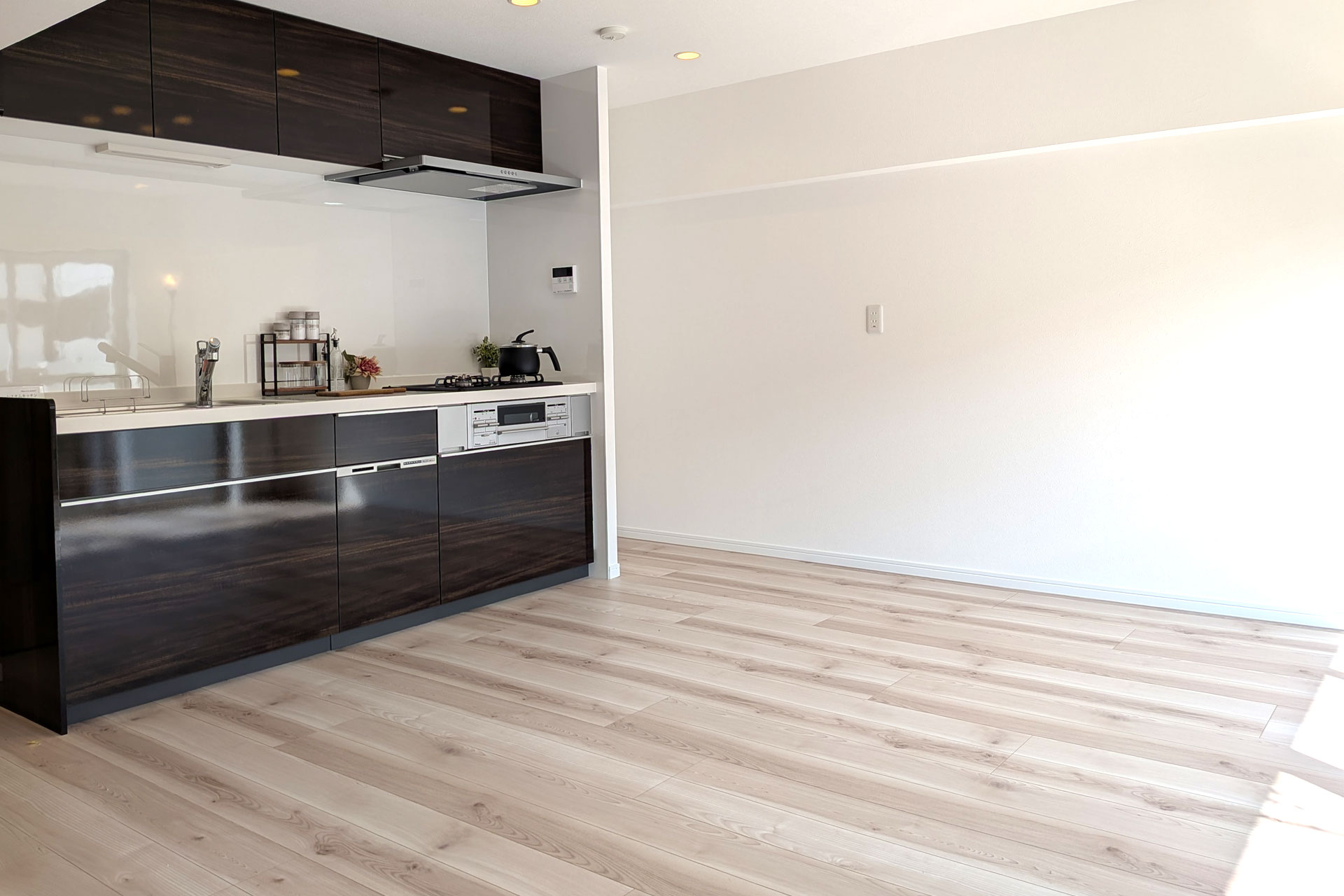 システムキッチン(食洗機付)、ユニットバス、浴室乾燥機、洗面化粧台、トイレ、ウォシュレット、天井・壁クロス張替え、フローリング張替え、建具、シューズボックス、照明器具