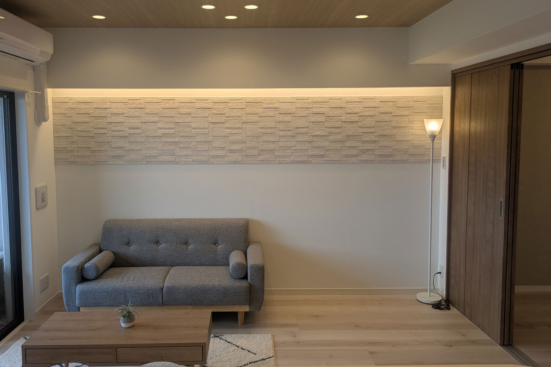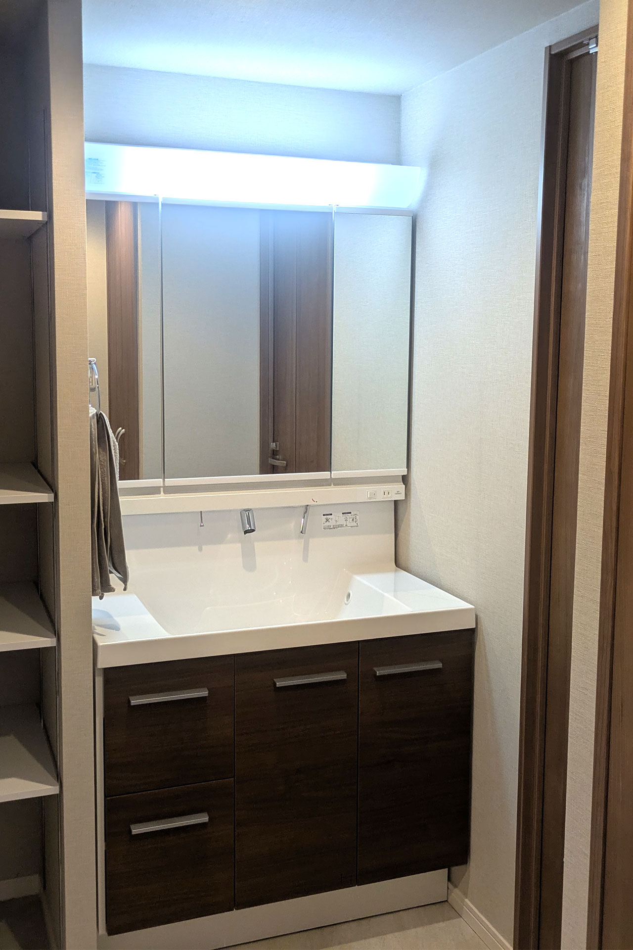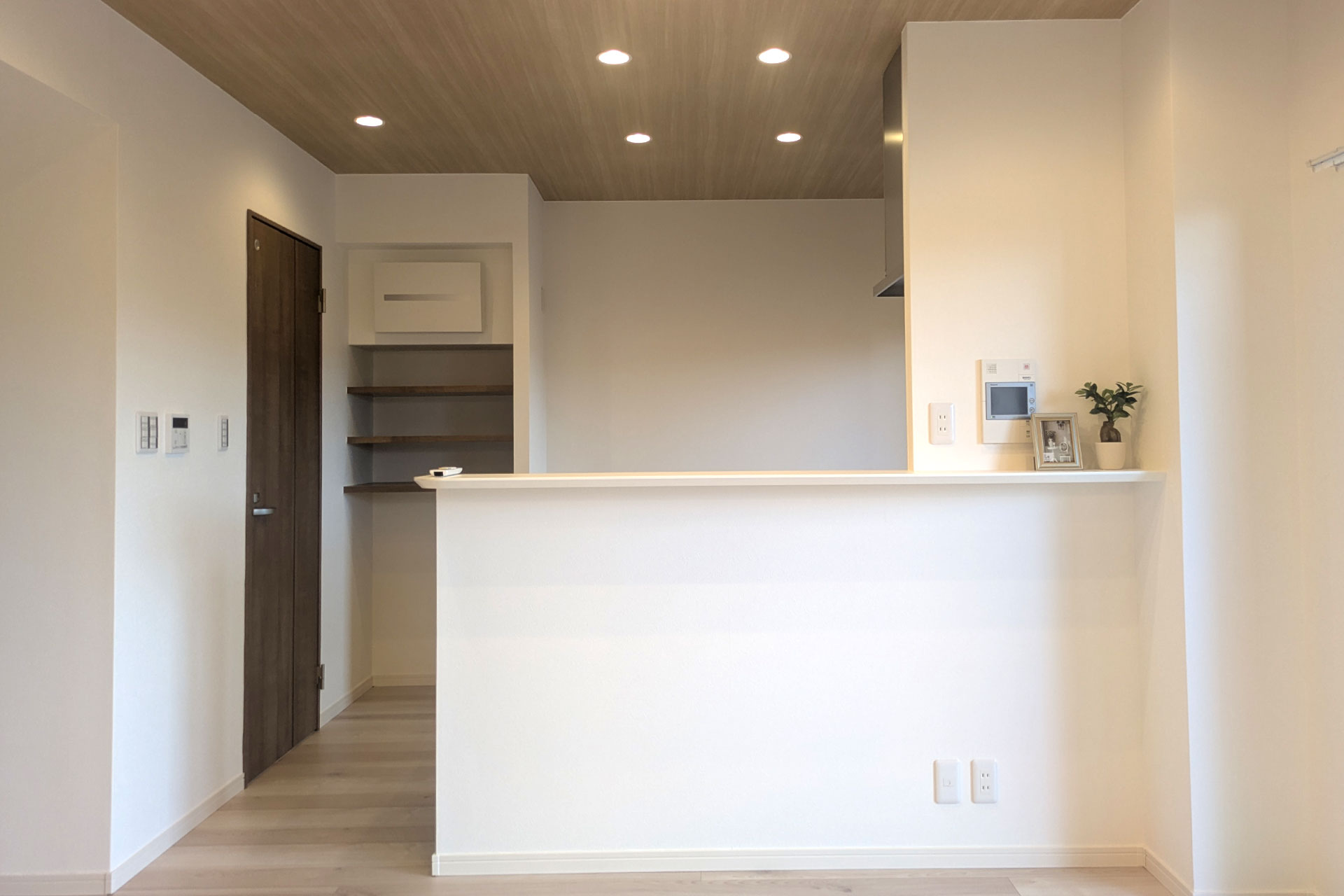 システムキッチン(食洗機付)、ユニットバス(追焚き)、浴室乾燥機、洗面化粧台、トイレ、ウォシュレット、天井・壁クロス張替え、フローリング張替え、建具、シューズボックス、照明器具