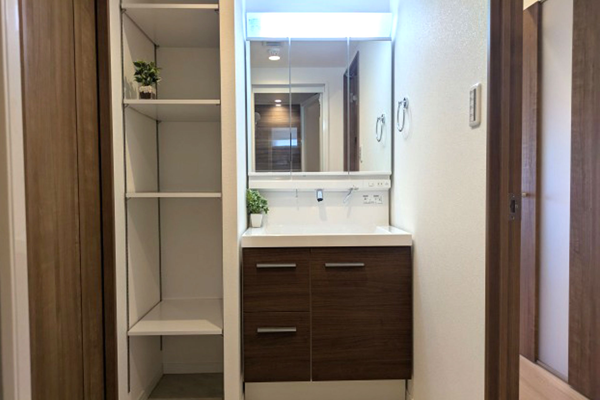 システムキッチン(食洗機付)、ユニットバス(追焚き)、浴室乾燥機、洗面化粧台、トイレ、ウォシュレット、天井・壁クロス張替え、フローリング張替え、建具、シューズボックス、照明器具