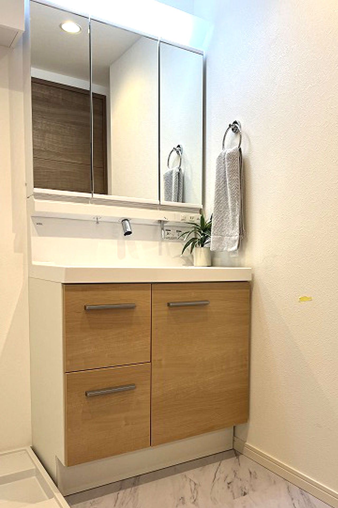 システムキッチン(食洗機付)、ユニットバス(追焚き)、浴室乾燥機、洗面化粧台、トイレ、ウォシュレット、天井・壁クロス張替え、フローリング張替え、建具、シューズボックス、照明器具